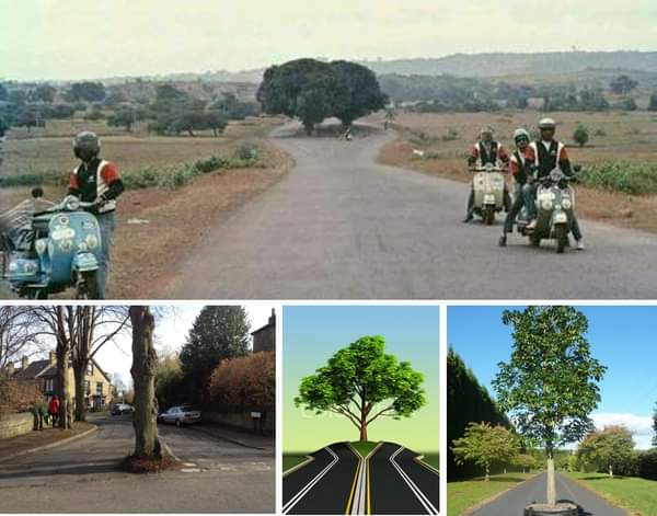 অনেক আগে দেখেছিলাম, দীর্ঘ একটি সোজা পথ এক জায়গায় বাঁকা হয়ে গেছে, যেখানে একটি গাছ। গাছের পর আবার রাস্তা সোজা হয়ে গেছে।